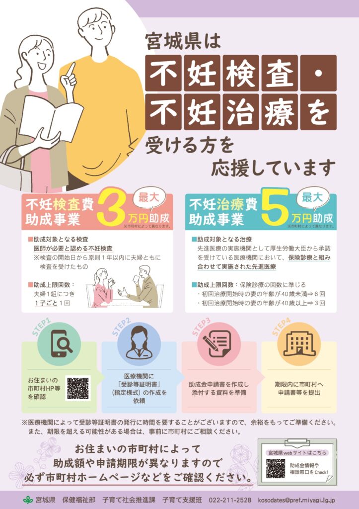 宮城県では、不妊治療に関する助成事業として次の2つがあります。